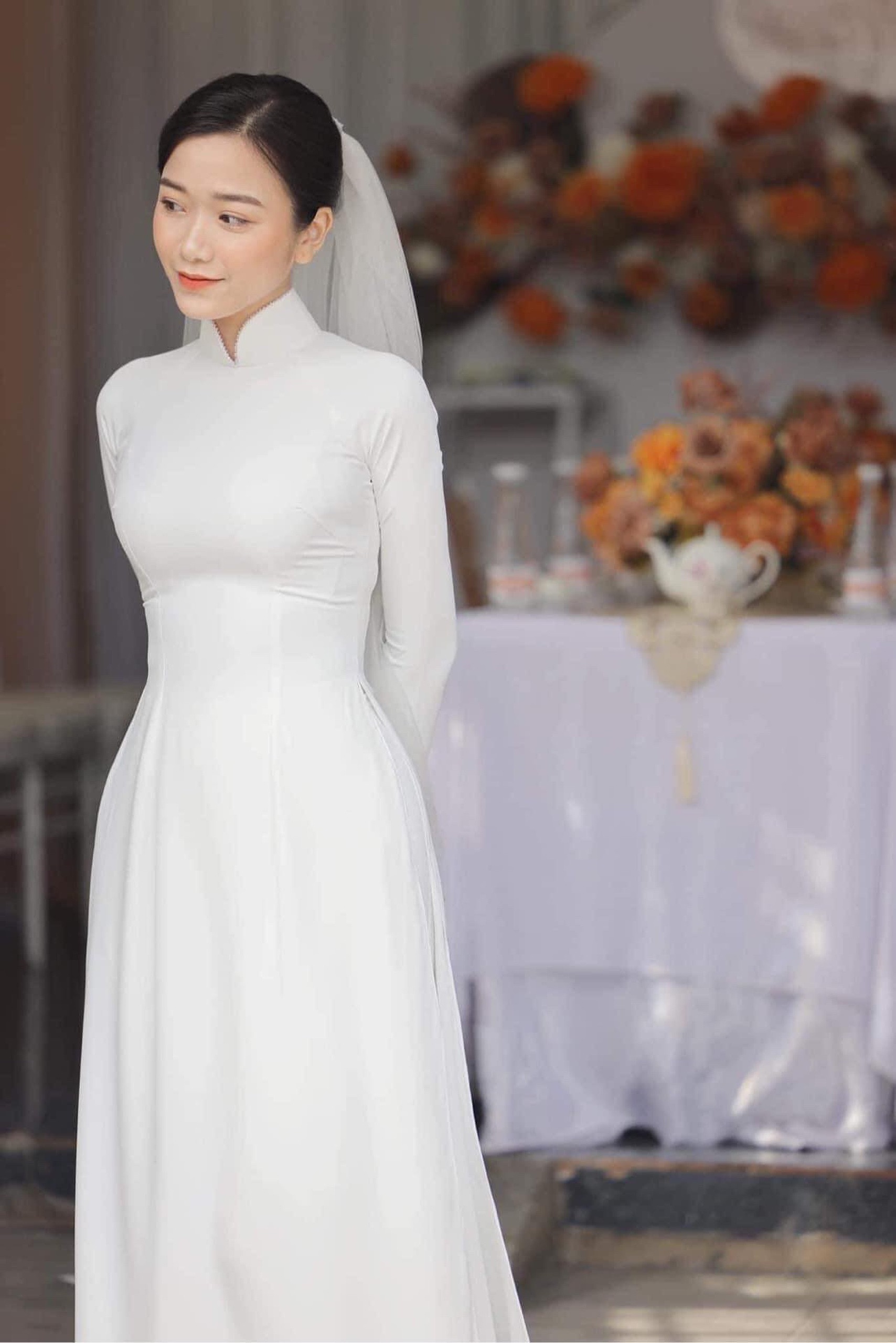 Các nàng dâu có thể lựa chọn may một chiếc Áo Dài Lụa Trắng trơn đơn giản. Với thiết kế của truyền thống cao từ 3cm đến 5cm. Tay thiết kế dài đảm bảo sự kín đáo và truyền thống.