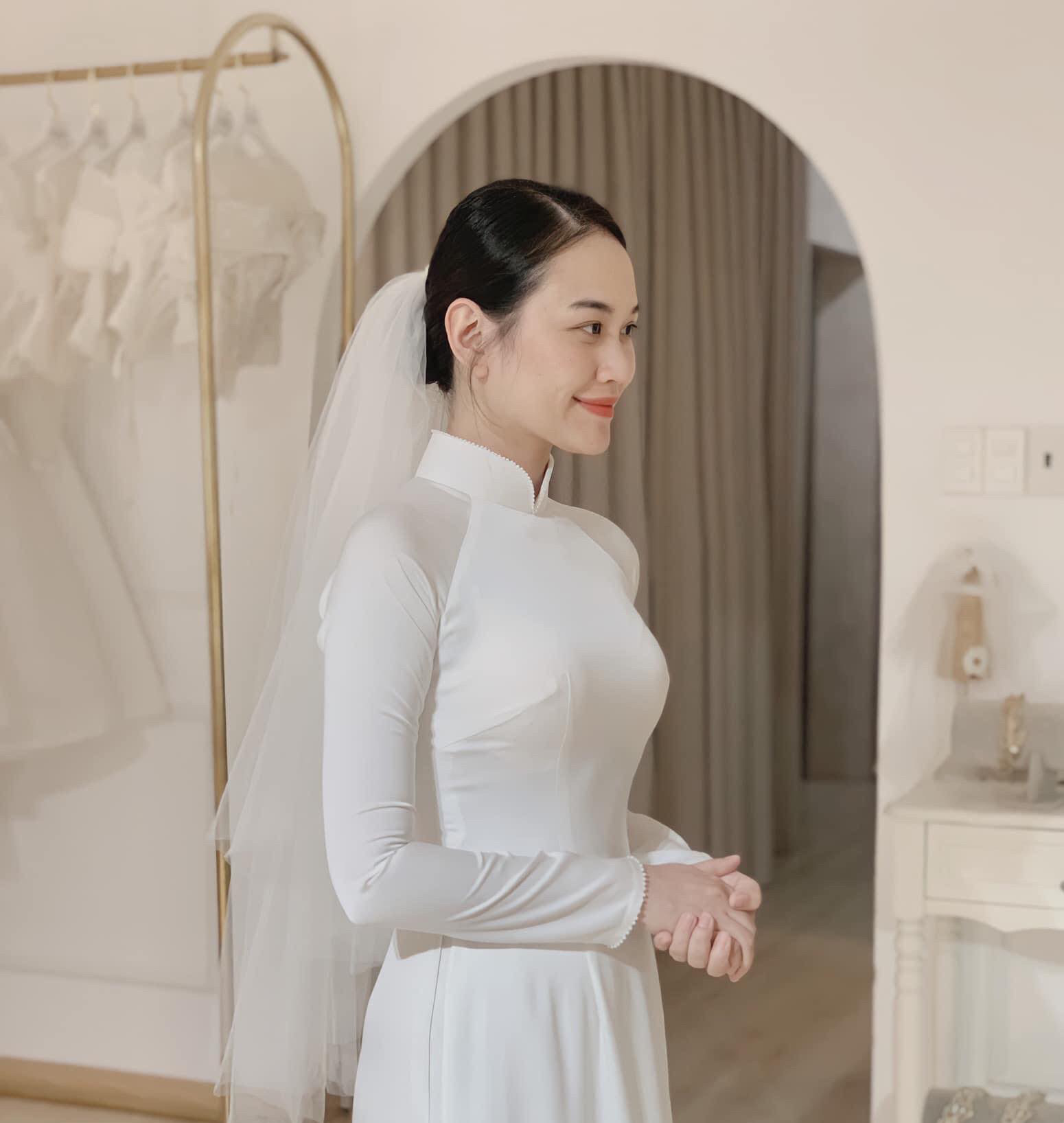 Áo Dài Lụa Trắng đơn giản cho Cô Dâu
