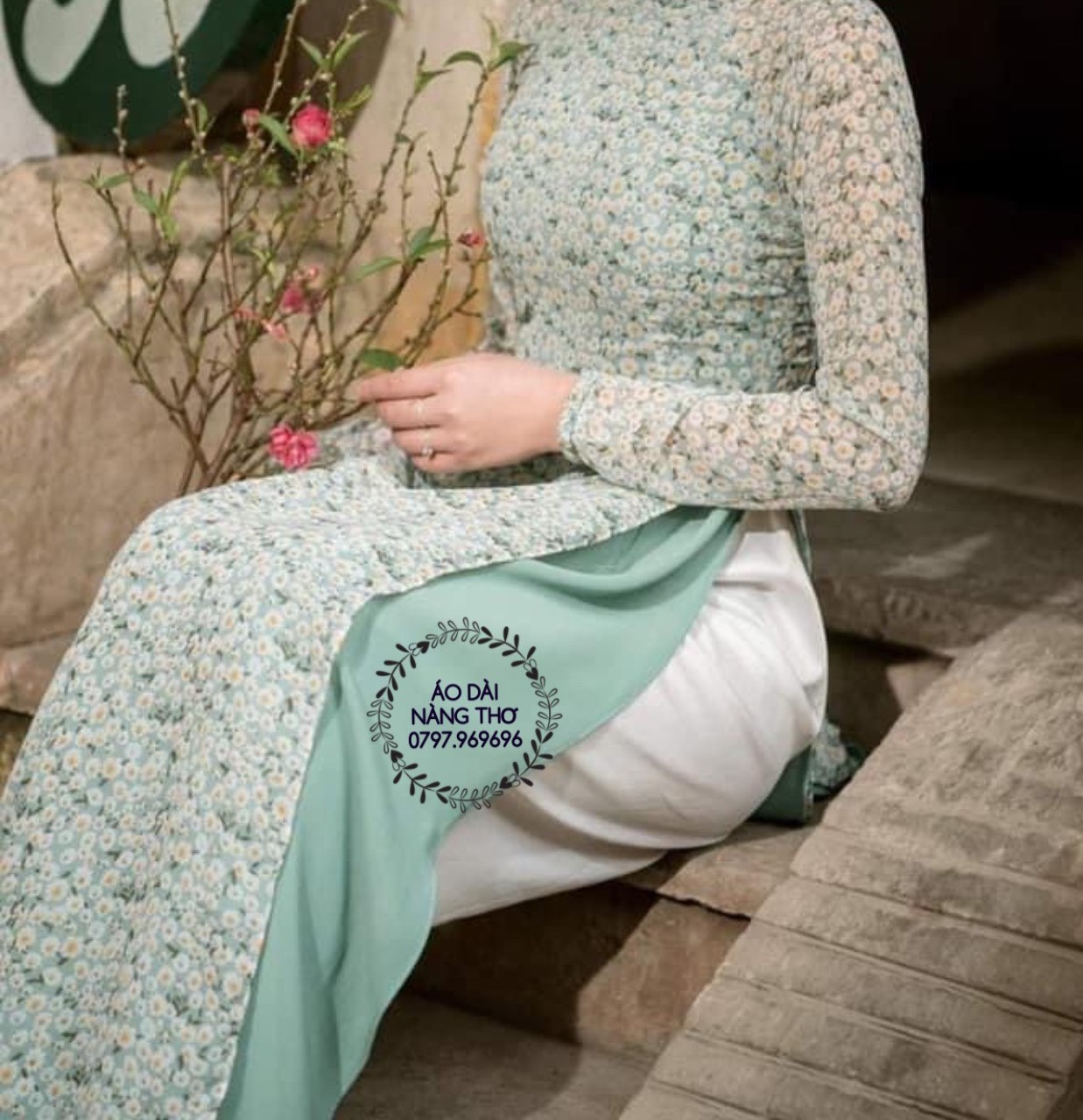 Những mẫu Áo Dài hoa cúc nhí thường kết hợp với quần dài có màu sắc theo một họa tiết trên Áo Dài, có người thích chọn quần Áo Dài màu xanh lá cây theo sắc lá, có chị lại thích phối với quần màu cánh hoa, mỗi sự kết hợp lại mang tới cho chiếc Áo Dài nét đẹp khác nhau.