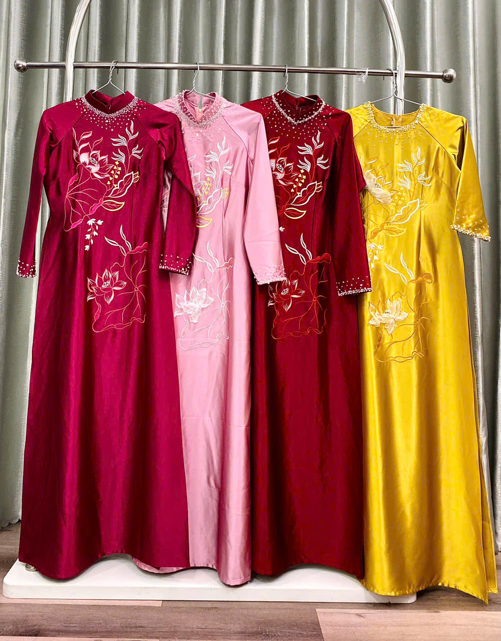 • Áo Dài Bà Sui Lụa Cao Cấp Thêu Họa Tiết Sen Sang Trọng