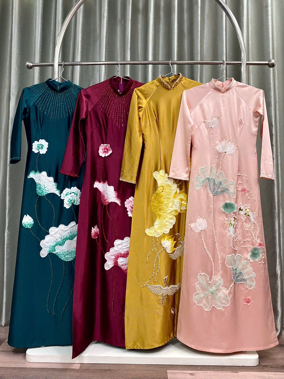 • Áo Dài Bà Sui Lụa Cao Cấp Thêu Họa Tiết Sen Sang Trọng