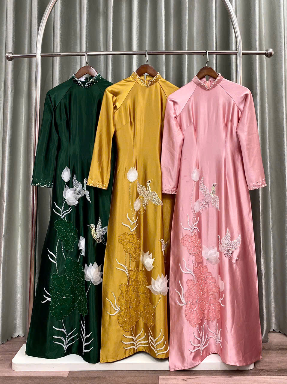 • Áo Dài Bà Sui Lụa Cao Cấp Đính Họa Tiết Sen Sang Trọng