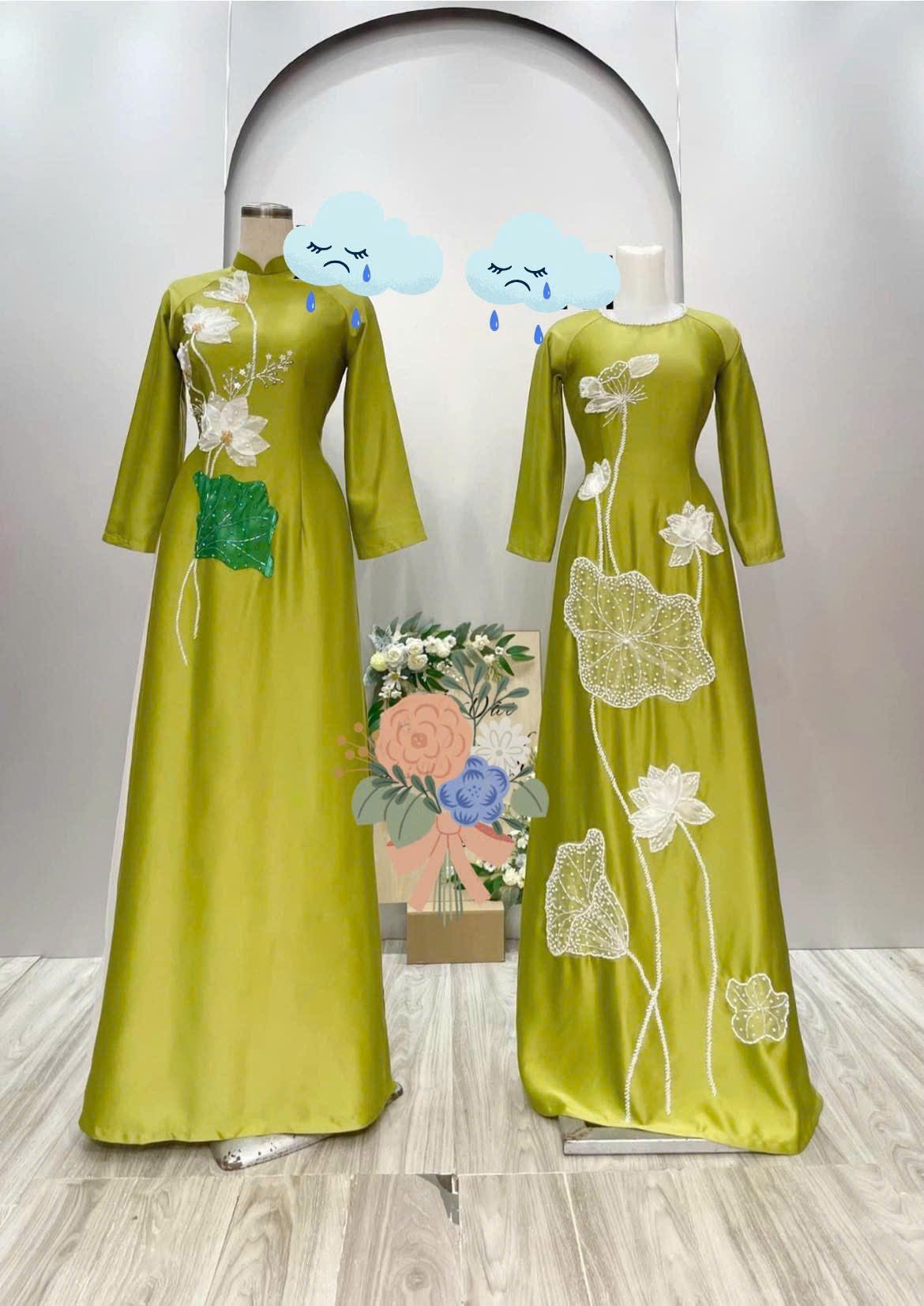 • Áo Dài Bà Sui Lụa Cao Cấp Đính Họa Tiết Sen Trẻ Trung Hiện Đại