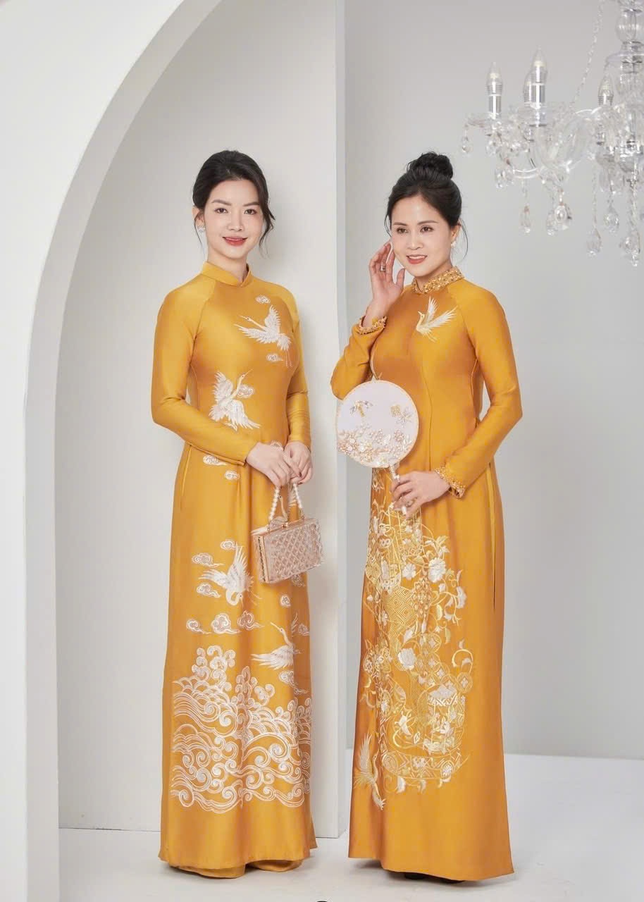 • Áo Dài Bà Sui Lụa Cao Cấp Họa Tiết Hạc Sang Trọng