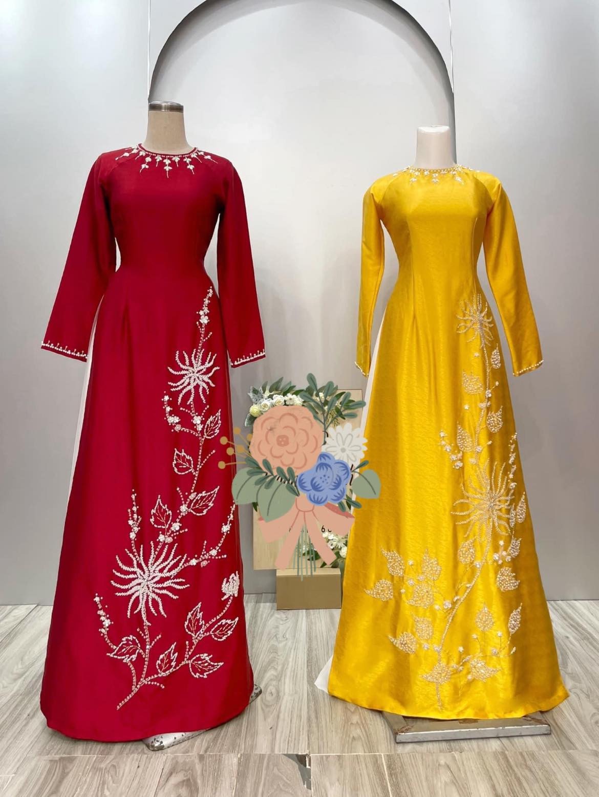 • Áo Dài Bà Sui Lụa Cao Cấp Đính Kết Trẻ Trung Hiện Đại