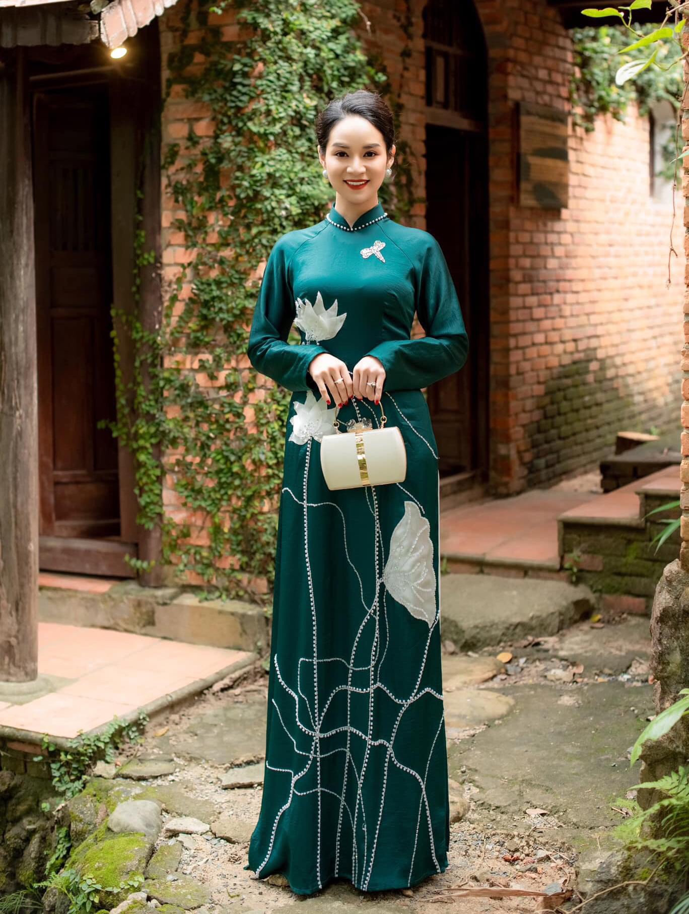 • Áo Dài Bà Sui Lụa Cao Cấp Họa Tiết Hoa Sen Nền Nã