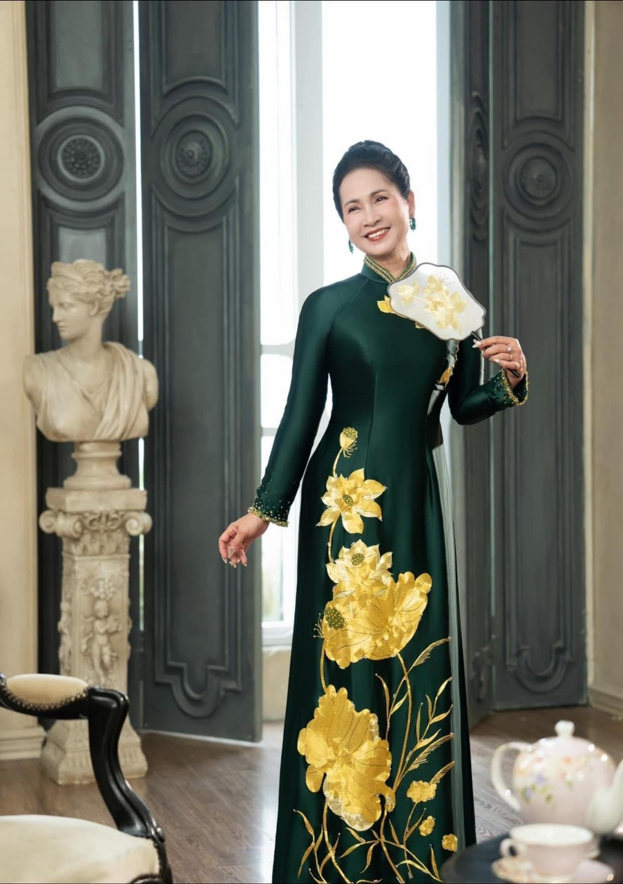 • Áo Dài Bà Sui Lụa Cao Cấp Họa Tiết Hoa Sen Sang Trọng