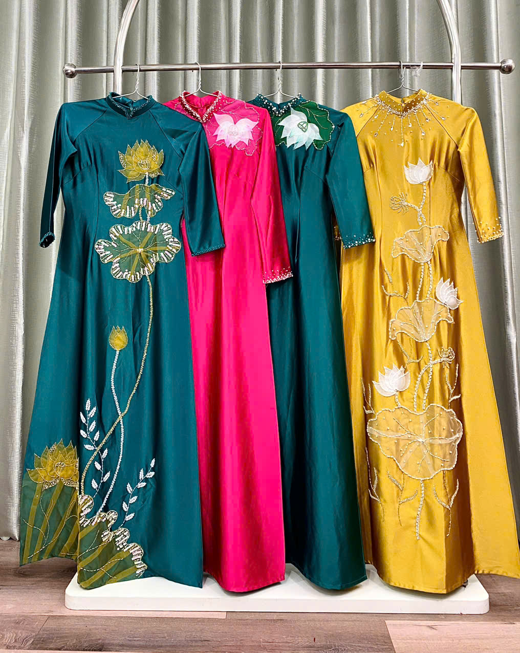 Áo Dài Bà Sui Lụa Cao Cấp Đính Họa Tiết Sen Sang Trọng