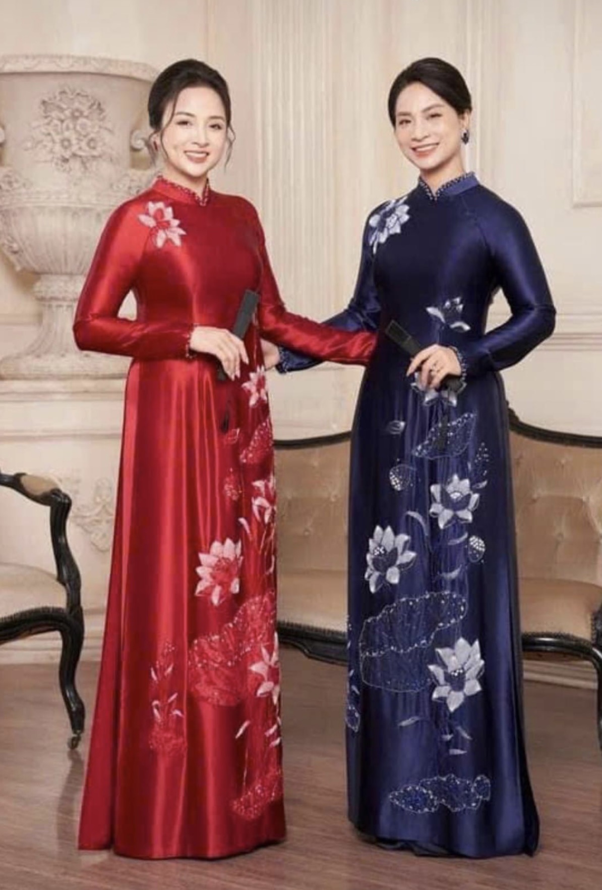• Áo Dài Bà Sui Lụa Cao Cấp Thêu Hoa Tinh Xảo