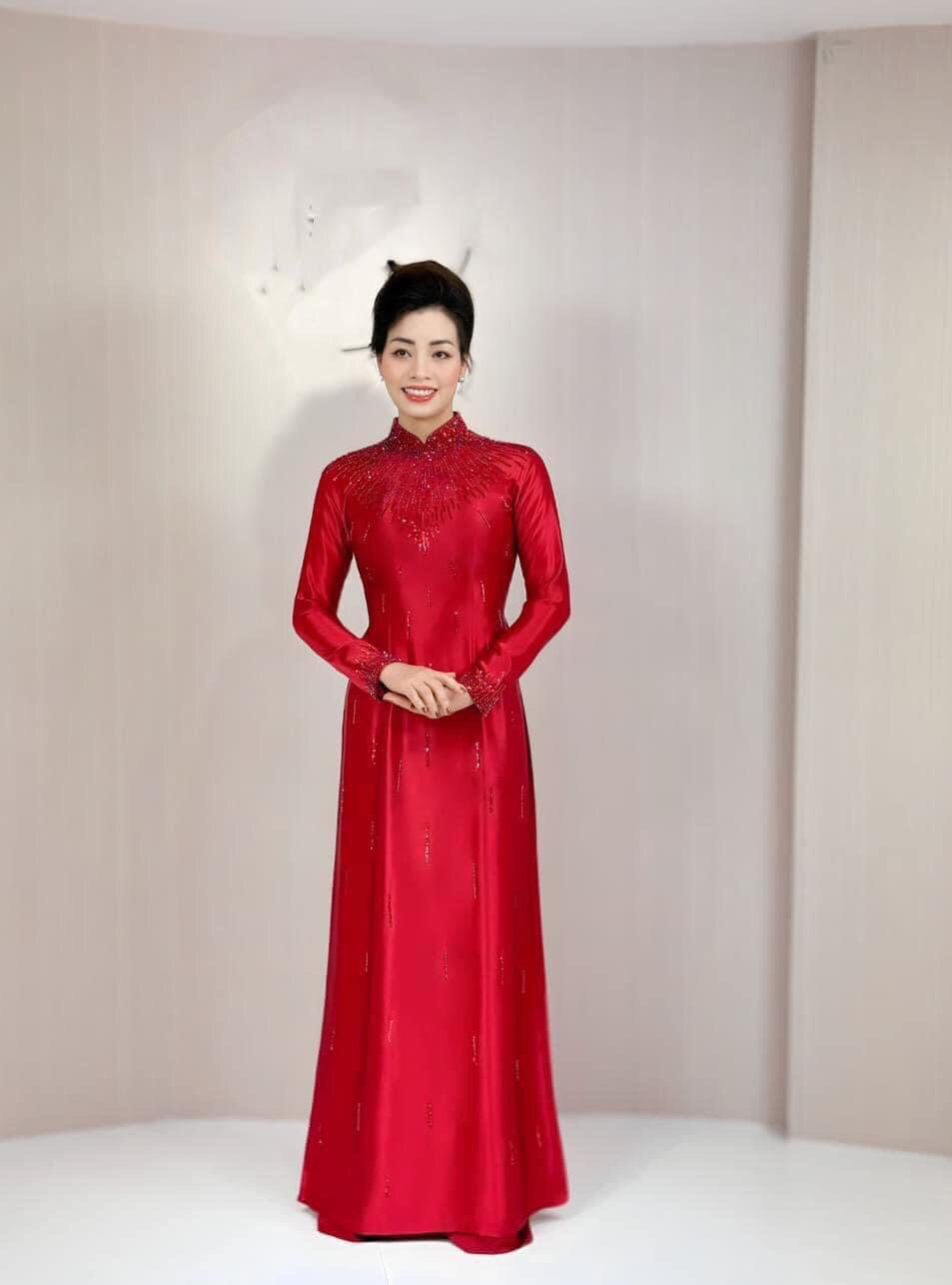 • Áo Dài Bà Sui Lụa Đỏ Đô Đính Đá Cao Cấp