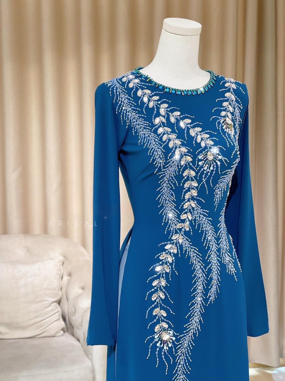 • Áo Dài Bà Sui Lụa Đính Đá Sang Trọng