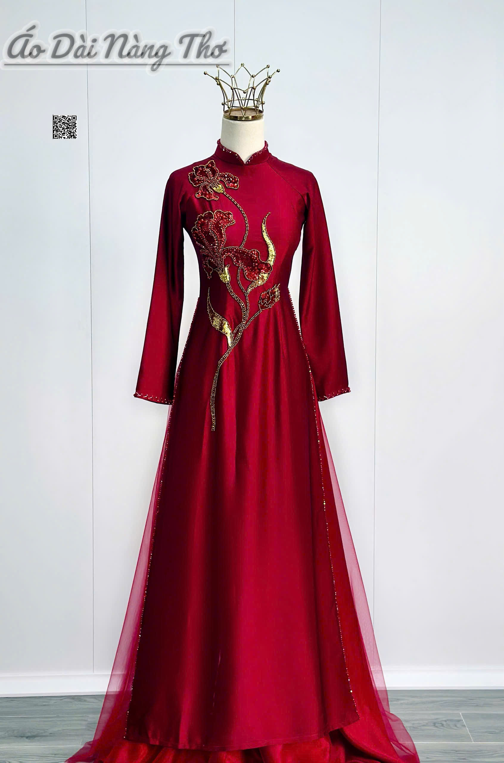 • Áo Dài Bà Sui Lụa Đỏ Đính Đá Sang Trọng