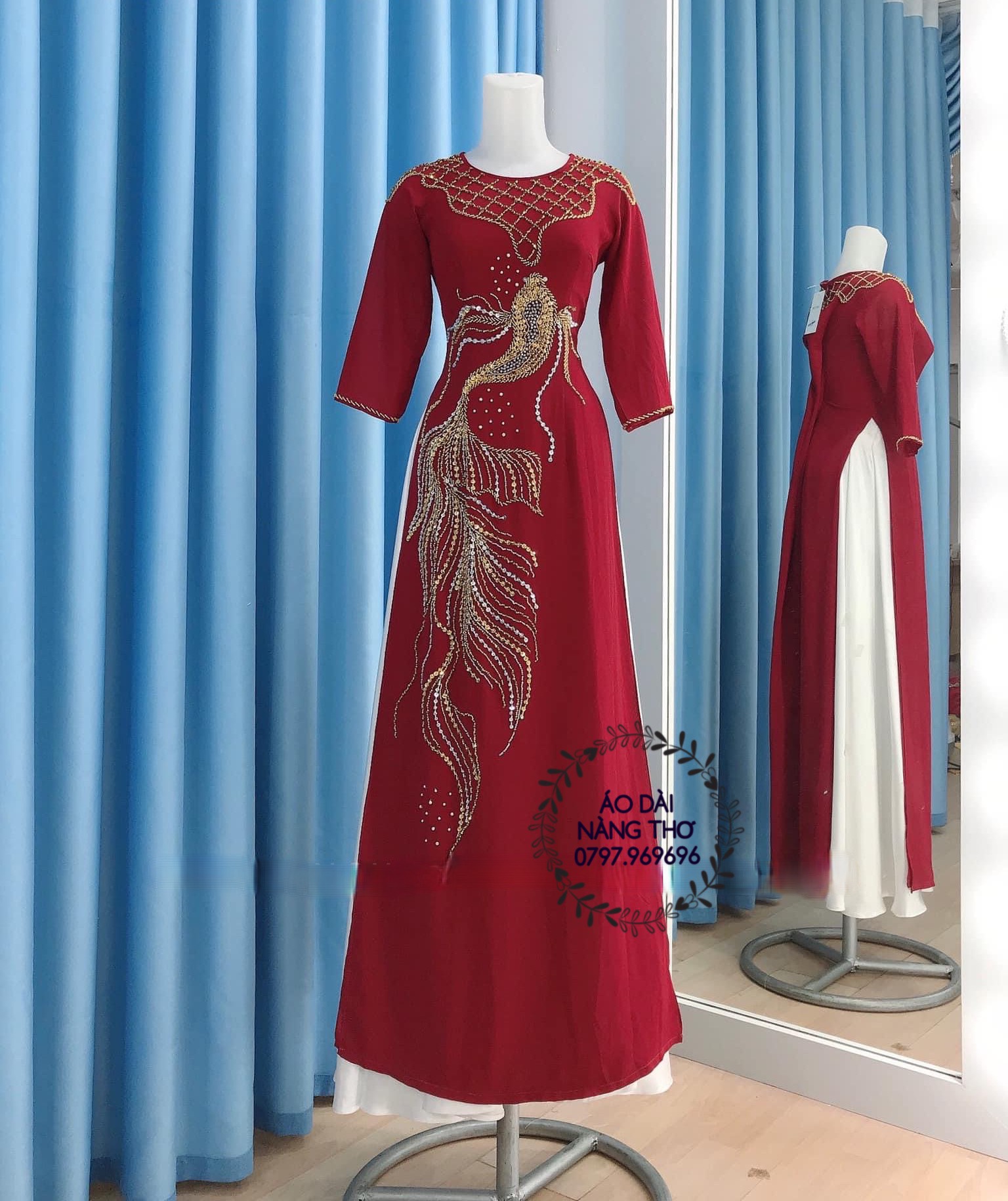• Áo Dài Bà Sui Lụa Đỏ Đô Kết Họa Tiết Cao Cấp