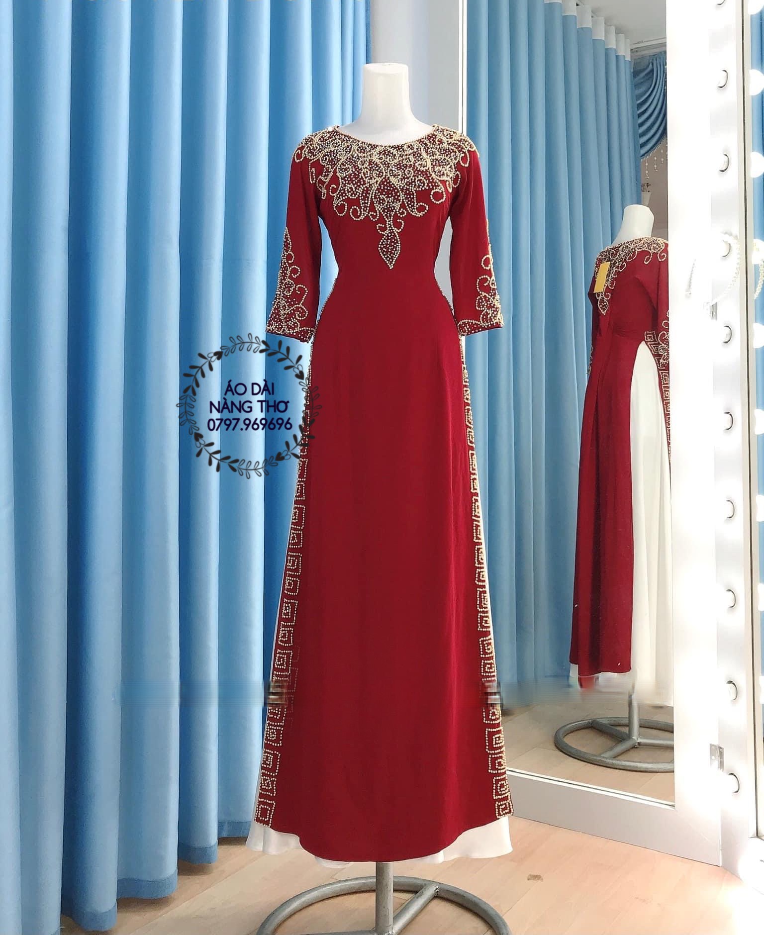 Áo Dài Bà Sui Lụa Đỏ Đô Kết Họa Tiết Cao Cấp