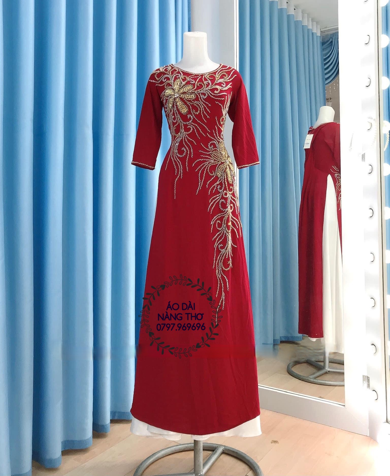Áo Dài Bà Sui Lụa Đỏ Đô Kết Họa Tiết Cao Cấp