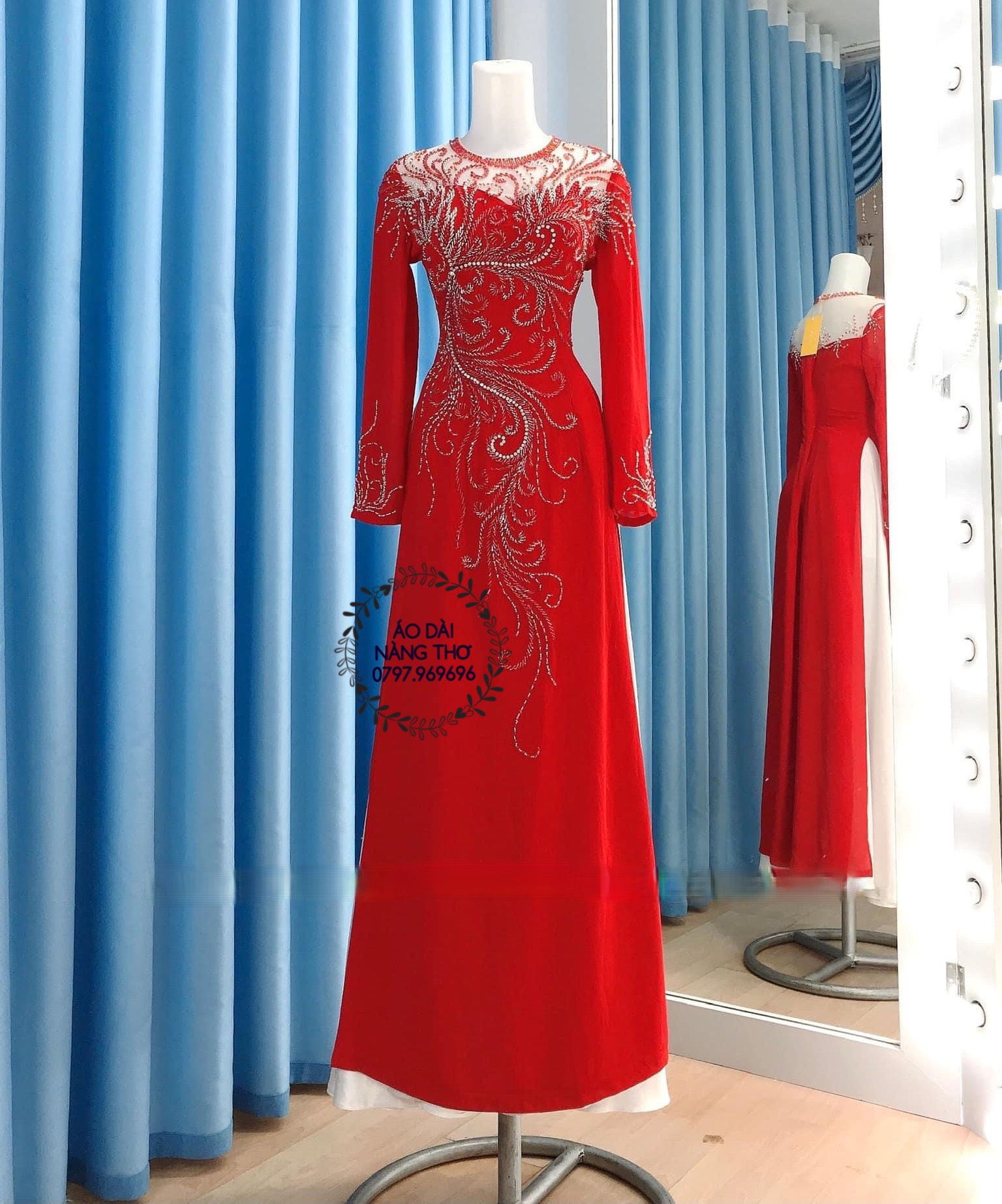 • Áo Dài Bà Sui Lụa Đỏ Kết Họa Tiết Cao Cấp