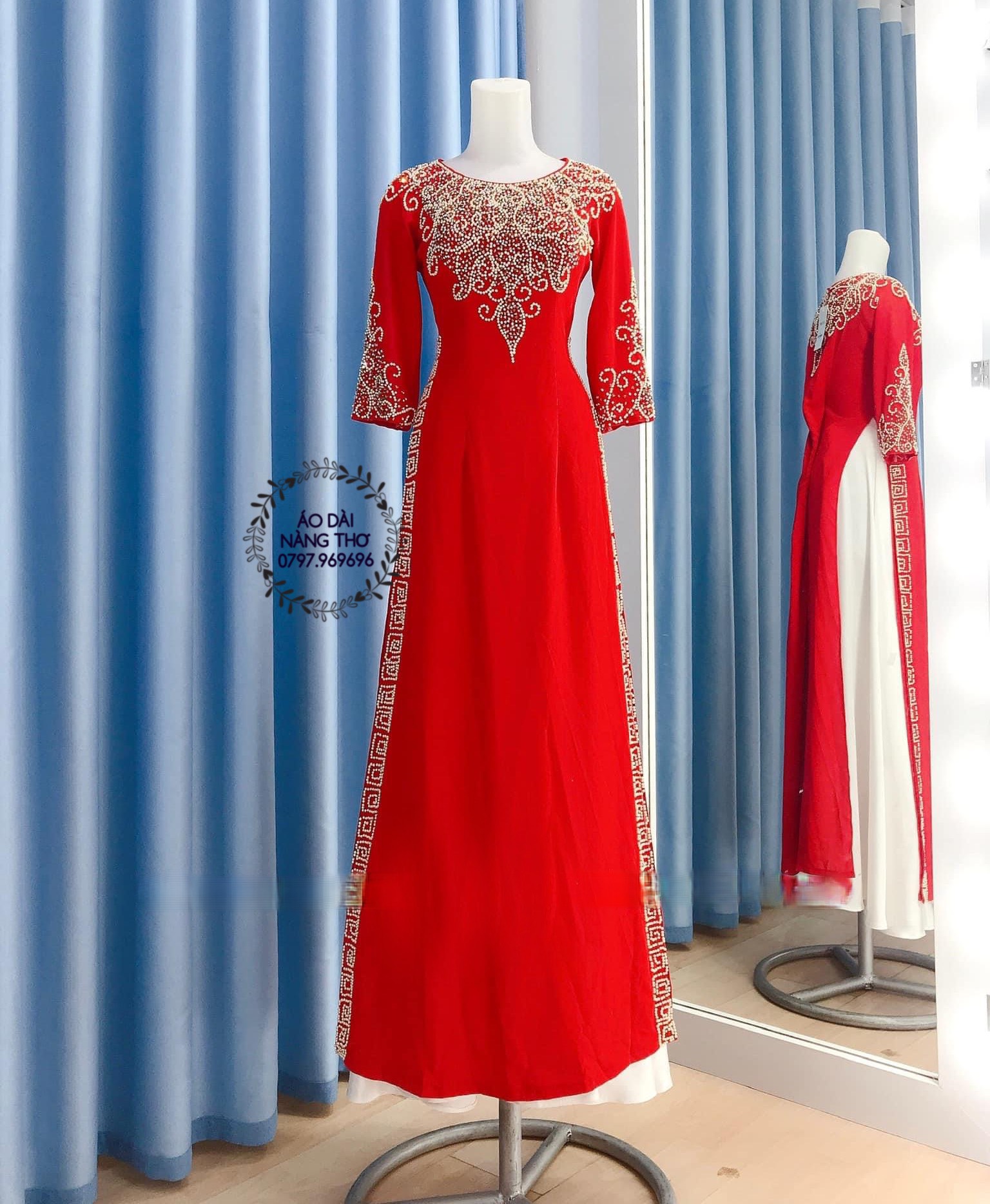• Áo Dài Bà Sui Lụa Đỏ Kết Họa Tiết Hoa Cao Cấp