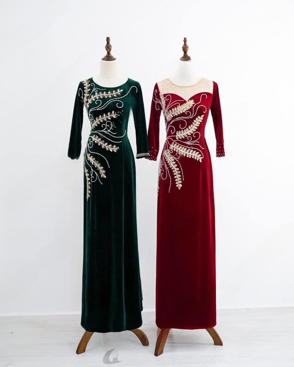 • Áo Dài Bà Sui Nhung Đính Đá Sang Trọng