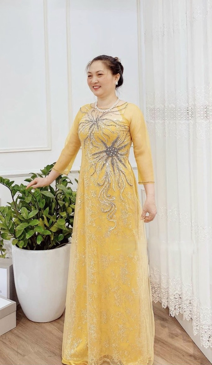 • Áo Dài Bà Sui Ren Vàng Kết Hạt