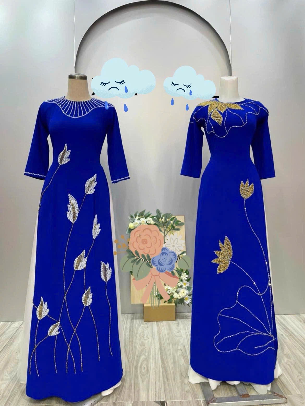• Áo Dài Bà Sui Lụa Cao Cấp Đính Họa Tiết Hoa Nổi Bật