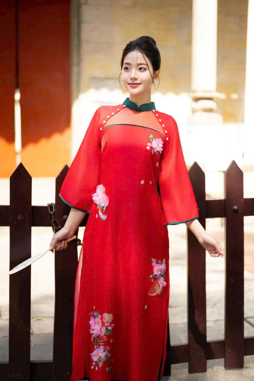 Một chiếc áo dài cách tân hiện đại khác là sự kết hợp giữa áo dài cách tân cùng chân váy xòe hoặc quần ống rộng. Nếu chọn chân váy, một chiếc váy xòe mềm mại như lụa sẽ mang đến cho bạn cảm giác bay bổng và năng động hơn. Còn nếu là sự kết hợp với quần ống rộng mang xu hướng hiện đại, thử chọn một chiếc culottes sẽ làm bạn thật trẻ trung khi bước ra đường.