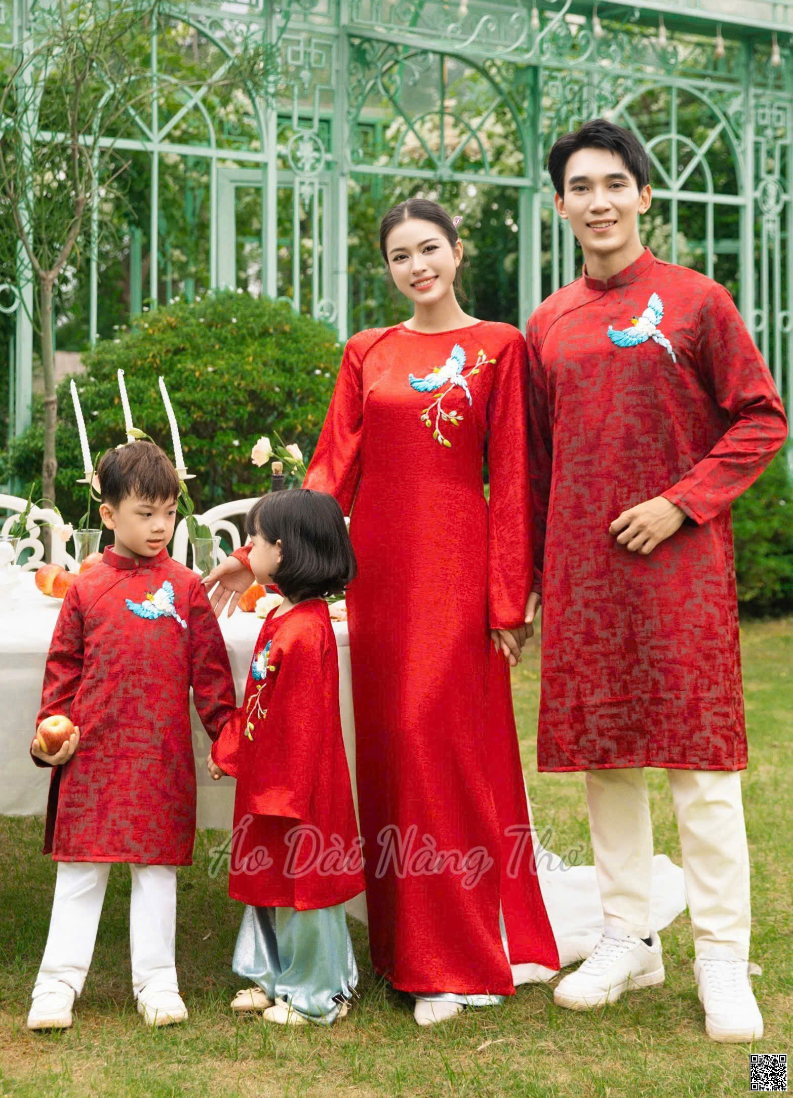 • Áo Dài Cách Tân Gia Đình Lụa Xẻ Tà Tân Thời