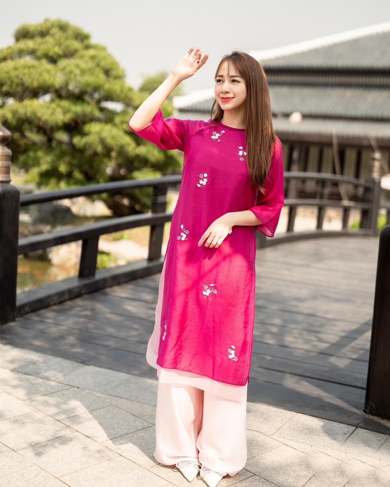 • Áo Dài Cách Tân Hồng Cánh Sen Điệu Đà