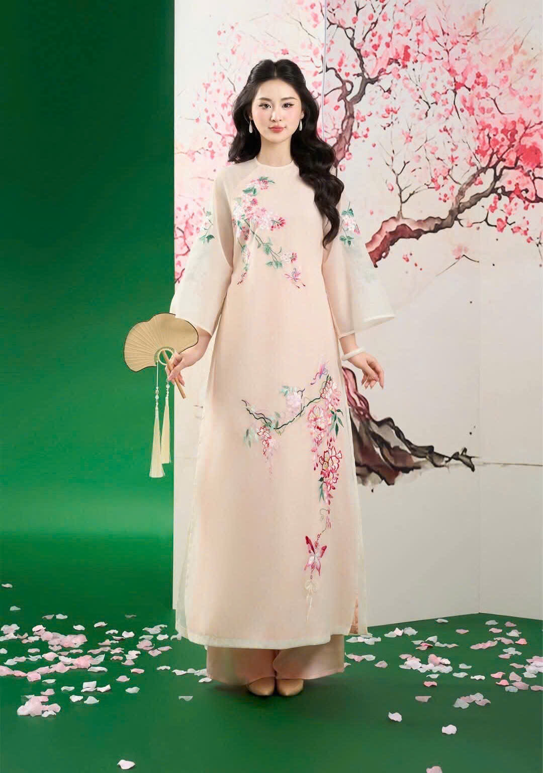• Áo Dài Cách Tân Voan Tơ Thêu Hoa