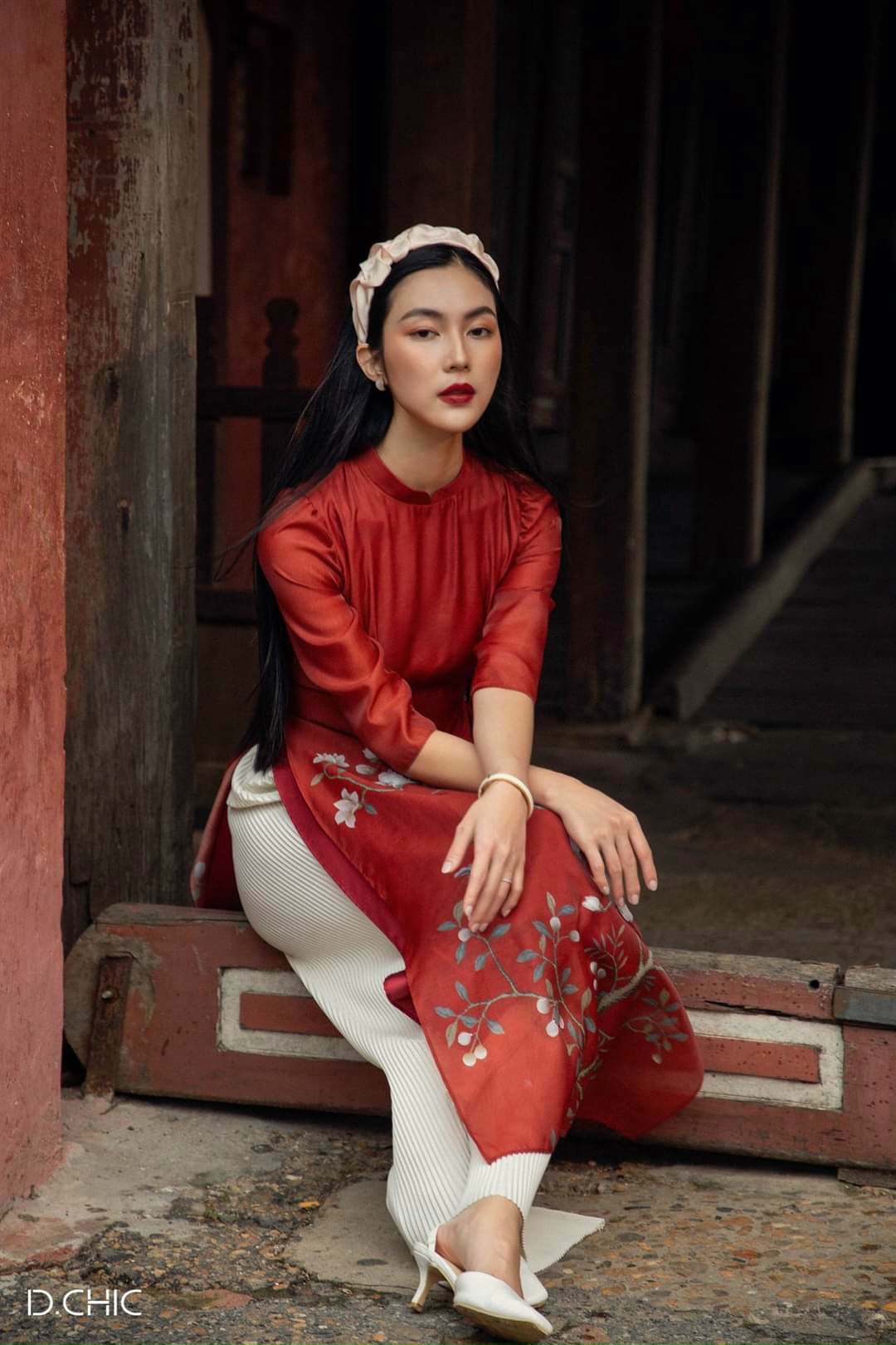 • Áo Dài Cách Tân Lửng Đỏ Tơ