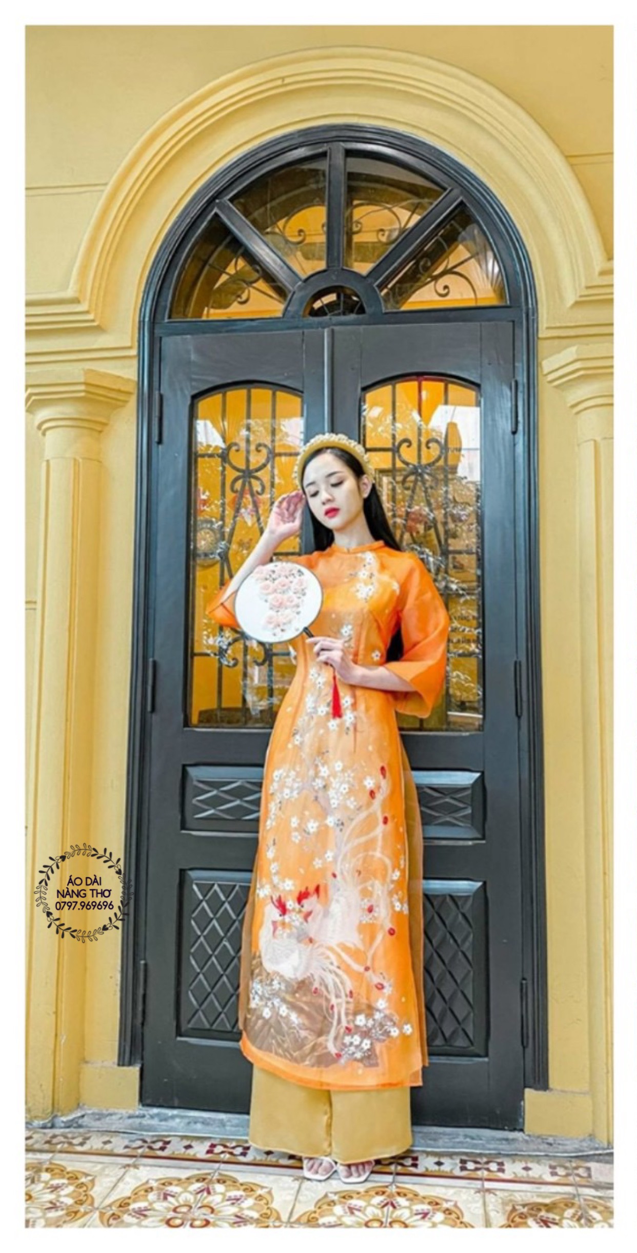 • Áo Dài Cách Tân Lửng Vàng Tơ