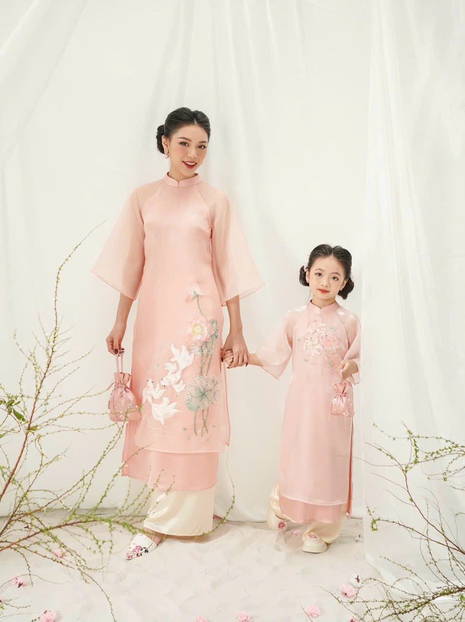 Áo Dài Cách Tân Mẹ Bé Voan Tơ In 3D