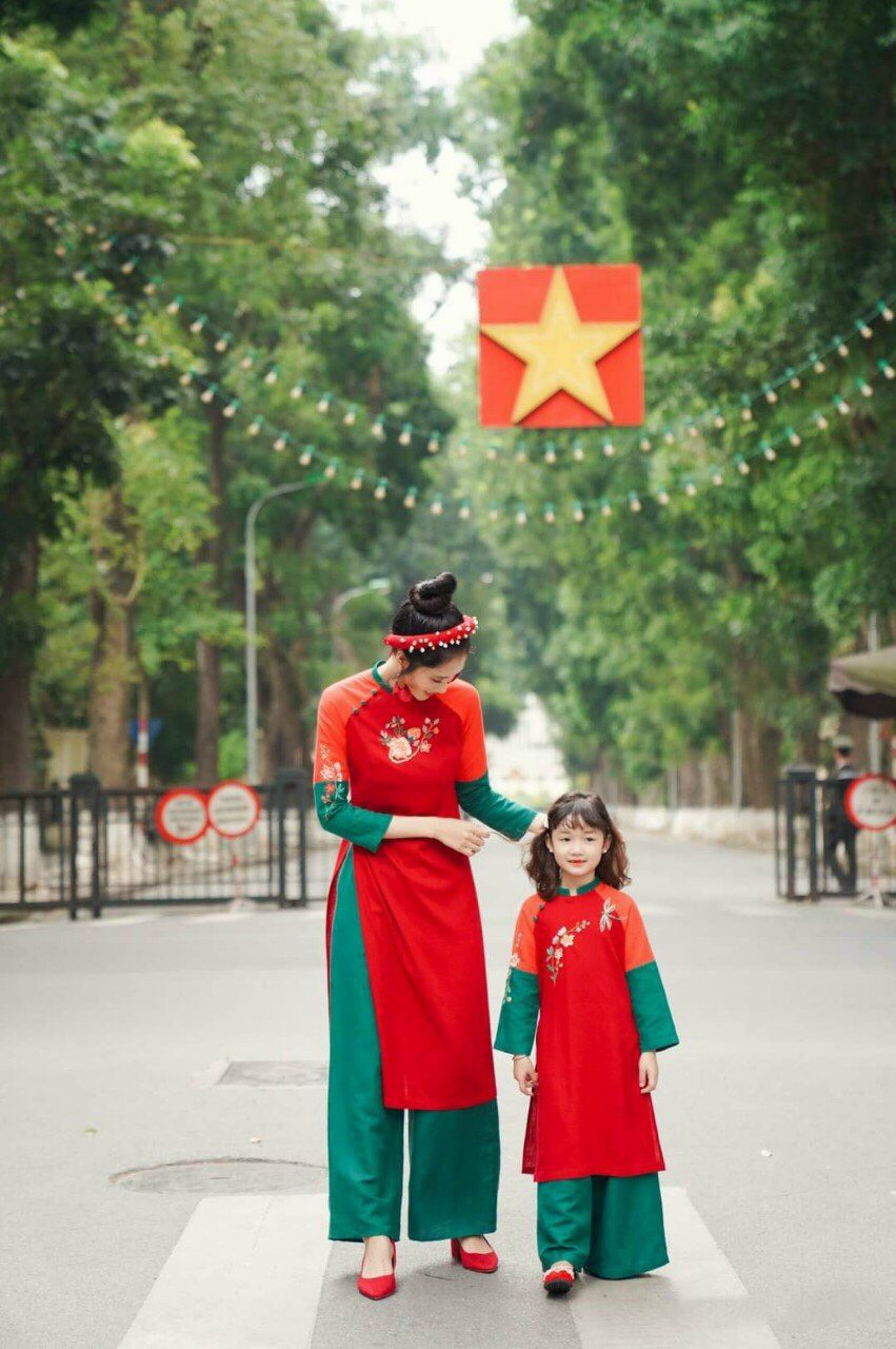 Bao ngày mẹ ngóng, bao ngày mẹ trông Bao ngày mẹ trông con chào đời Con gái yêu của mẹ, mới ngày nào con còn bé xíu trong nôi, rồi chập chững những bước đầu đời. Mẹ yêu những chiếc váy áo đôi của mẹ con mình, mẹ áo lớn, con áo nhỏ. Tết năm nay, mẹ chọn Áo dài Nàng Thơ với những chiếc áo dài cách tân mẹ bé đủ size cho mẹ con mình, con nhé!