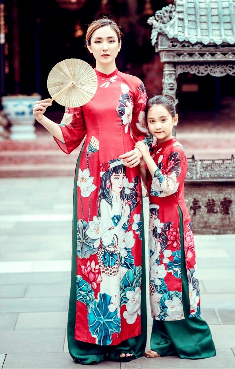 Bao ngày mẹ ngóng, bao ngày mẹ trông Bao ngày mẹ trông con chào đời Con gái yêu của mẹ, mới ngày nào con còn bé xíu trong nôi, rồi chập chững những bước đầu đời. Mẹ yêu những chiếc váy áo đôi của mẹ con mình, mẹ áo lớn, con áo nhỏ. Tết năm nay, mẹ chọn Áo dài Nàng Thơ với những chiếc áo dài cách tân mẹ bé đủ size cho mẹ con mình, con nhé!