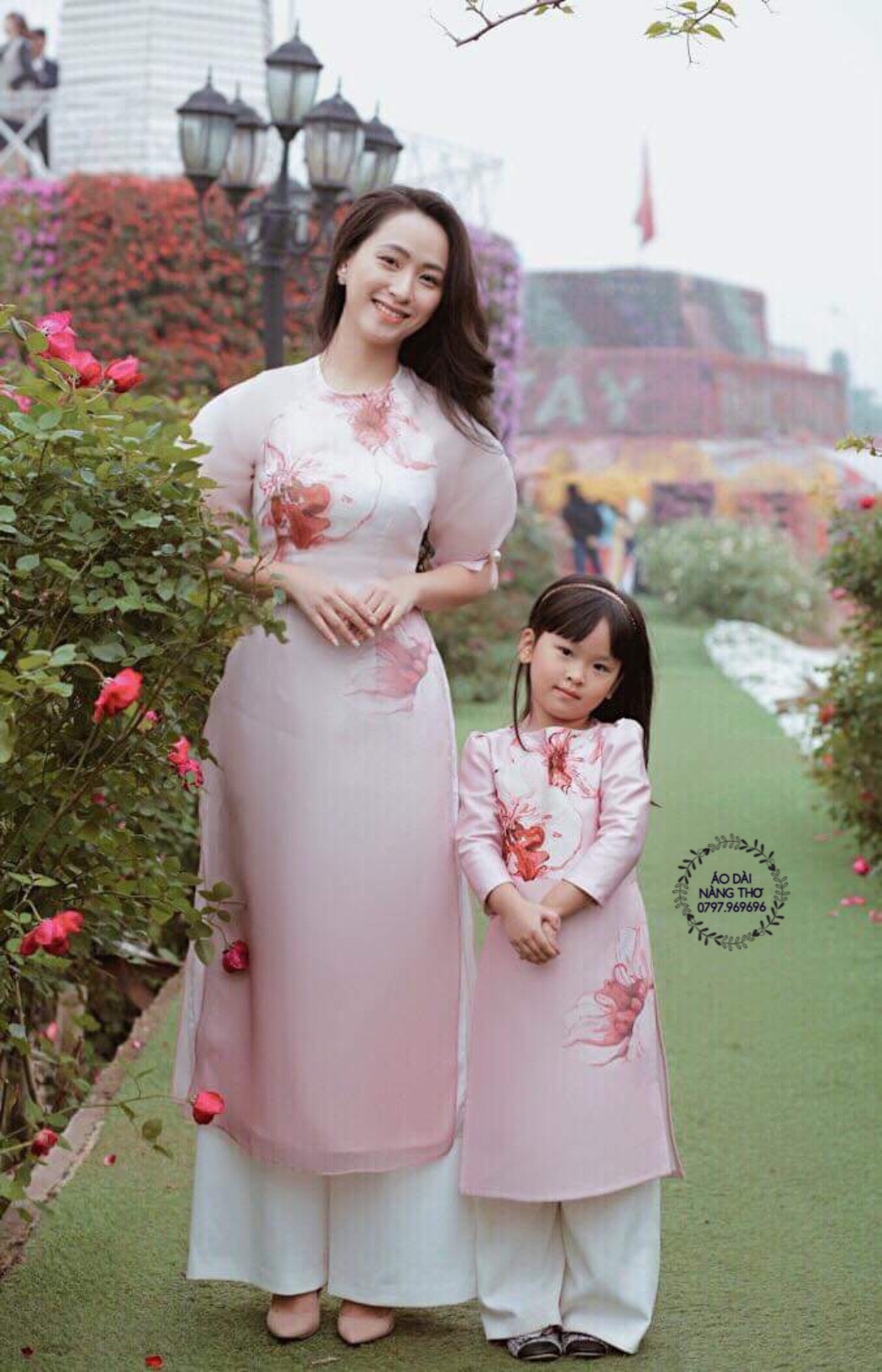 Bao ngày mẹ ngóng, bao ngày mẹ trông Bao ngày mẹ trông con chào đời Con gái yêu của mẹ, mới ngày nào con còn bé xíu trong nôi, rồi chập chững những bước đầu đời. Mẹ yêu những chiếc váy áo đôi của mẹ con mình, mẹ áo lớn, con áo nhỏ. Tết năm nay, mẹ chọn Áo dài Nàng Thơ với những chiếc áo dài cách tân mẹ bé đủ size cho mẹ con mình, con nhé!