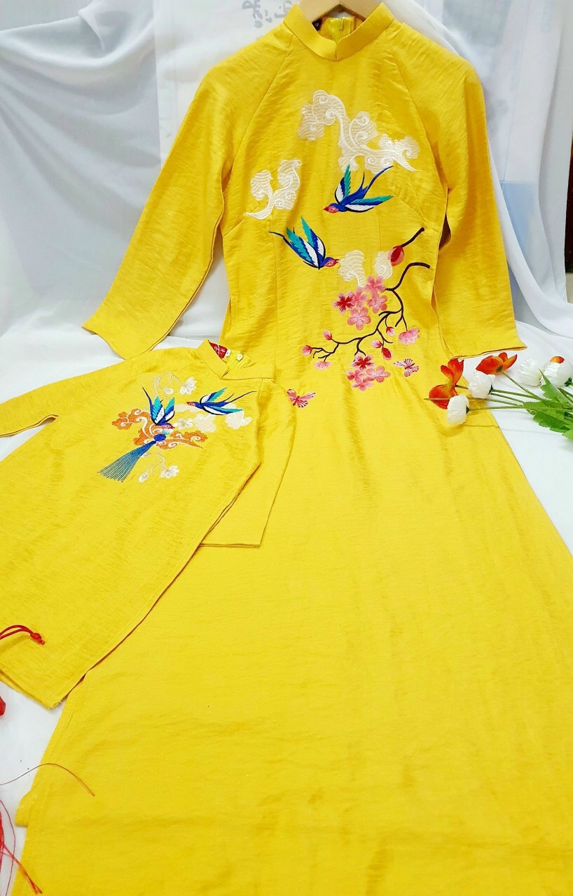 Áo Dài Cách Tân Mẹ Và Bé Vàng Thêu