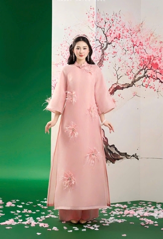 Áo Dài Cách Tân Kim Sa Hồng Xinh Xắn NU0506
