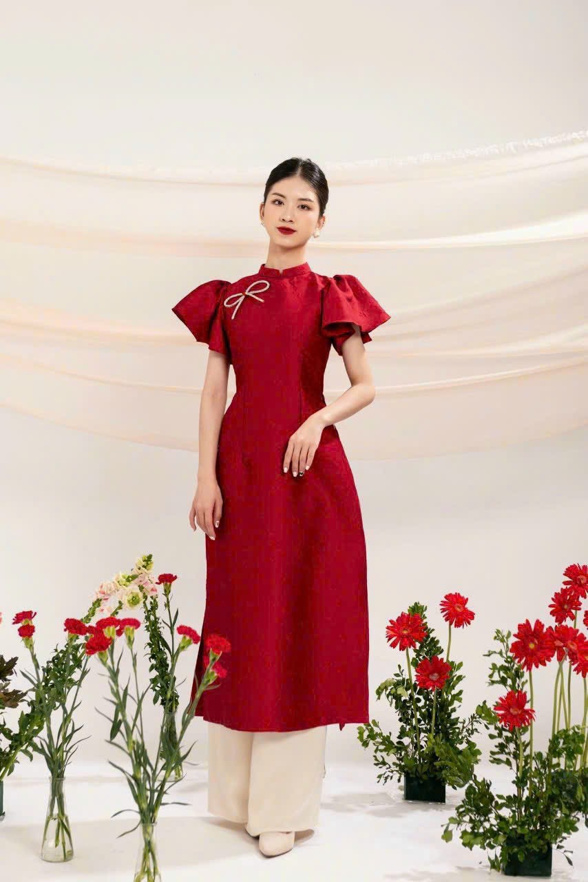• Áo Dài Cách Tân Sắc Đỏ Nổi Bật