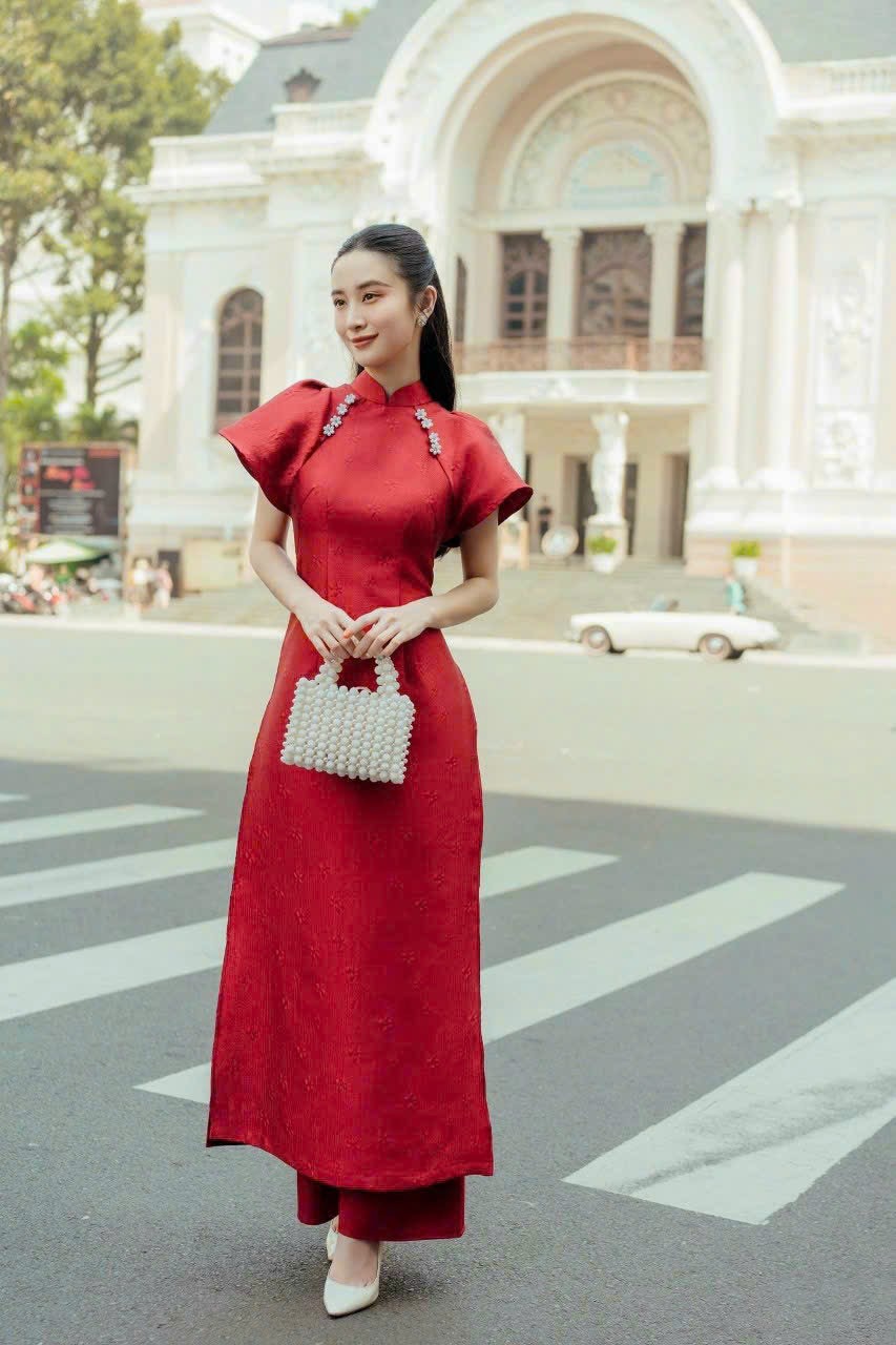 • Áo Dài Cách Tân Sắc Đỏ Nổi Bật
