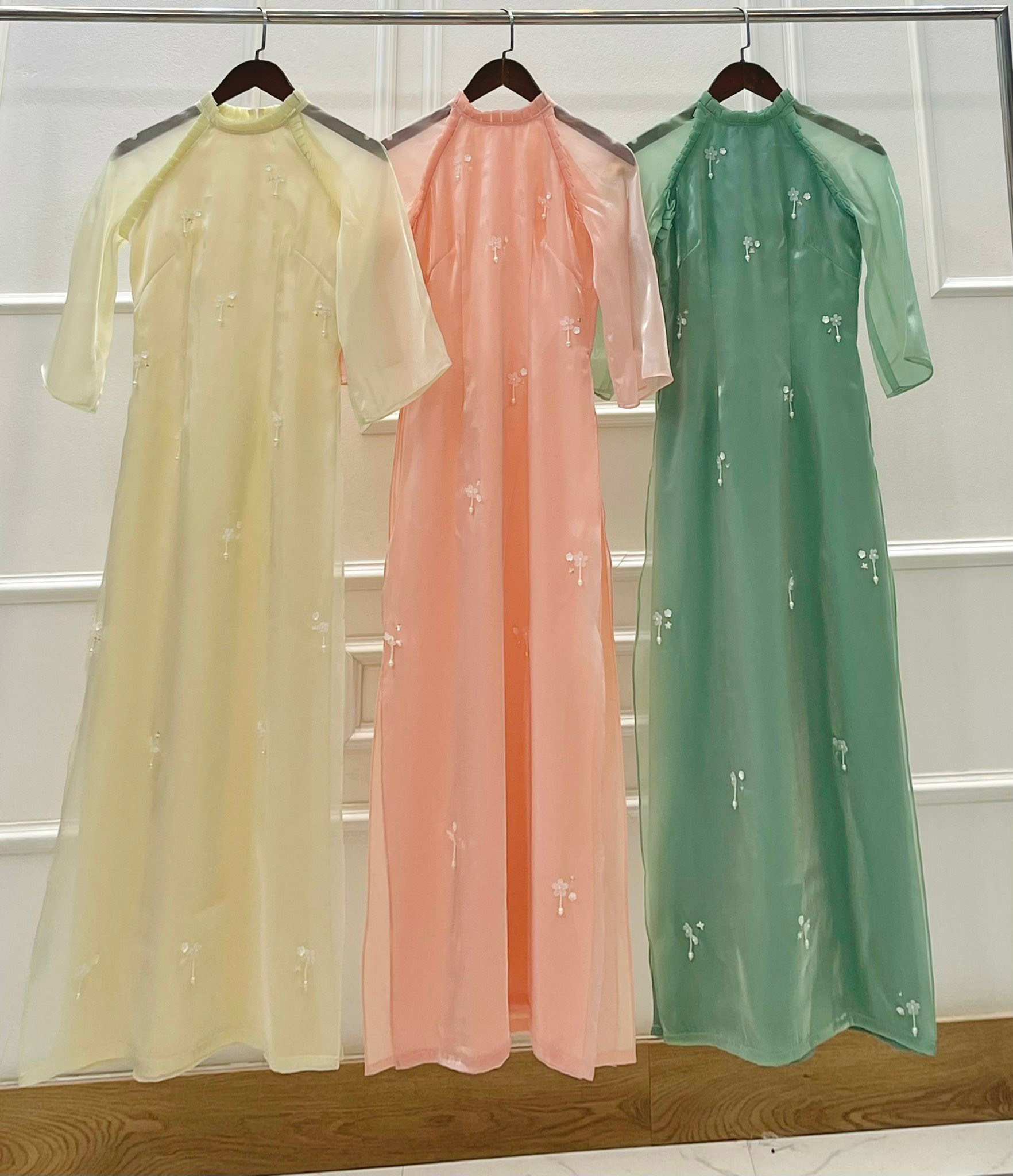 • Áo Dài Cách Tân Voan Tơ Đính Hoa Rơi