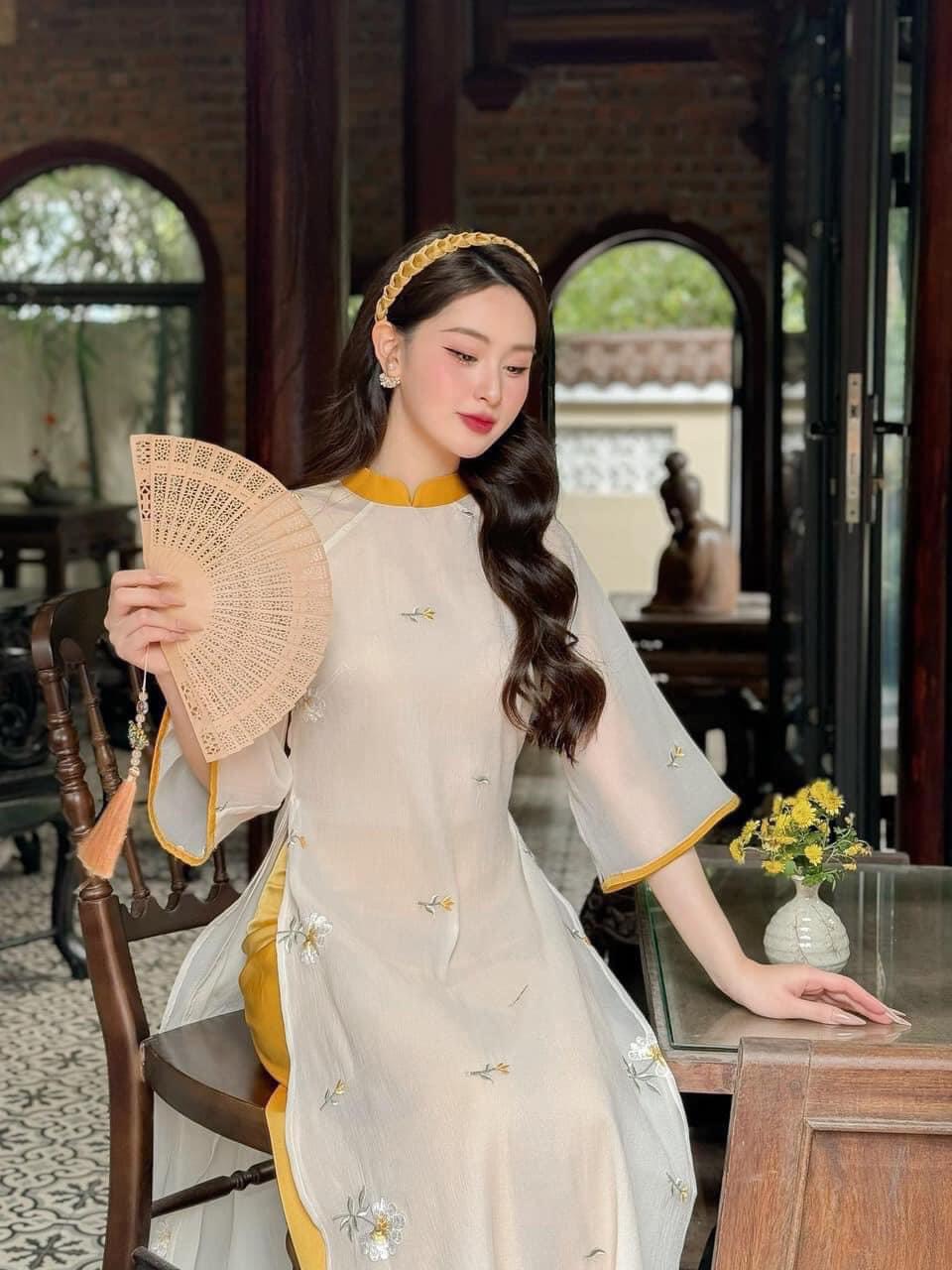 • Áo Dài Cách Tân Voan Tơ Hoa Thêu Xinh Xắn