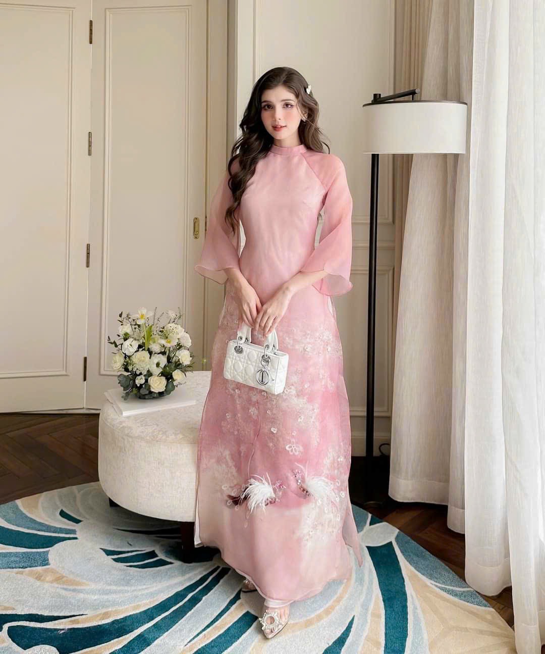 • Áo Dài Cách Tân Voan Tơ In 3D Nổi Bật