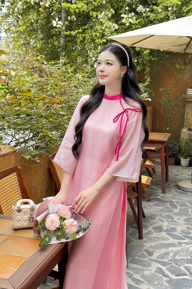 • Áo Dài Cách Tân Voan Tơ Phối Cổ Xinh Xắn