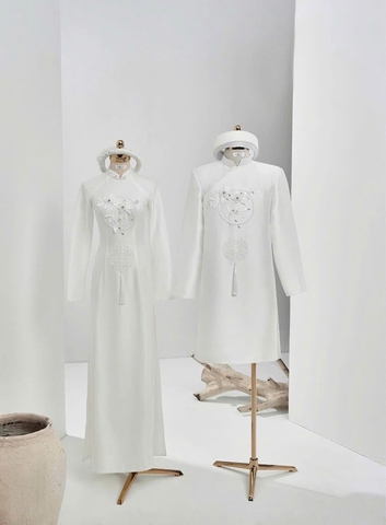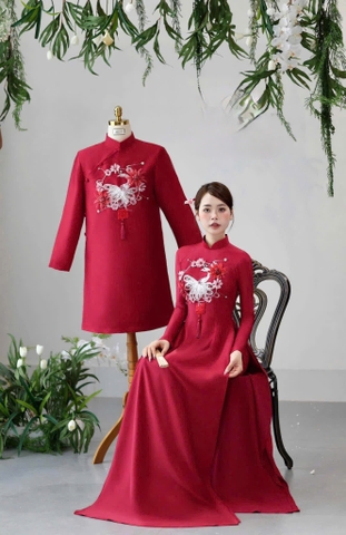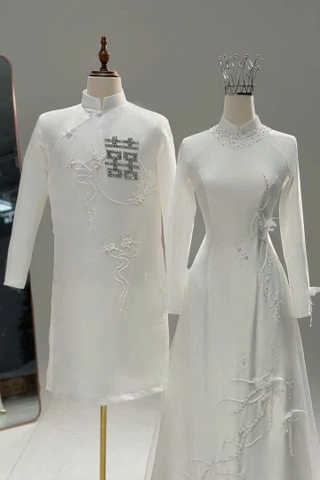 Áo Dài Cưới Cặp Đôi Họa Tiết Chữ Hỷ Phối Hoa Trẻ Trung CP0223