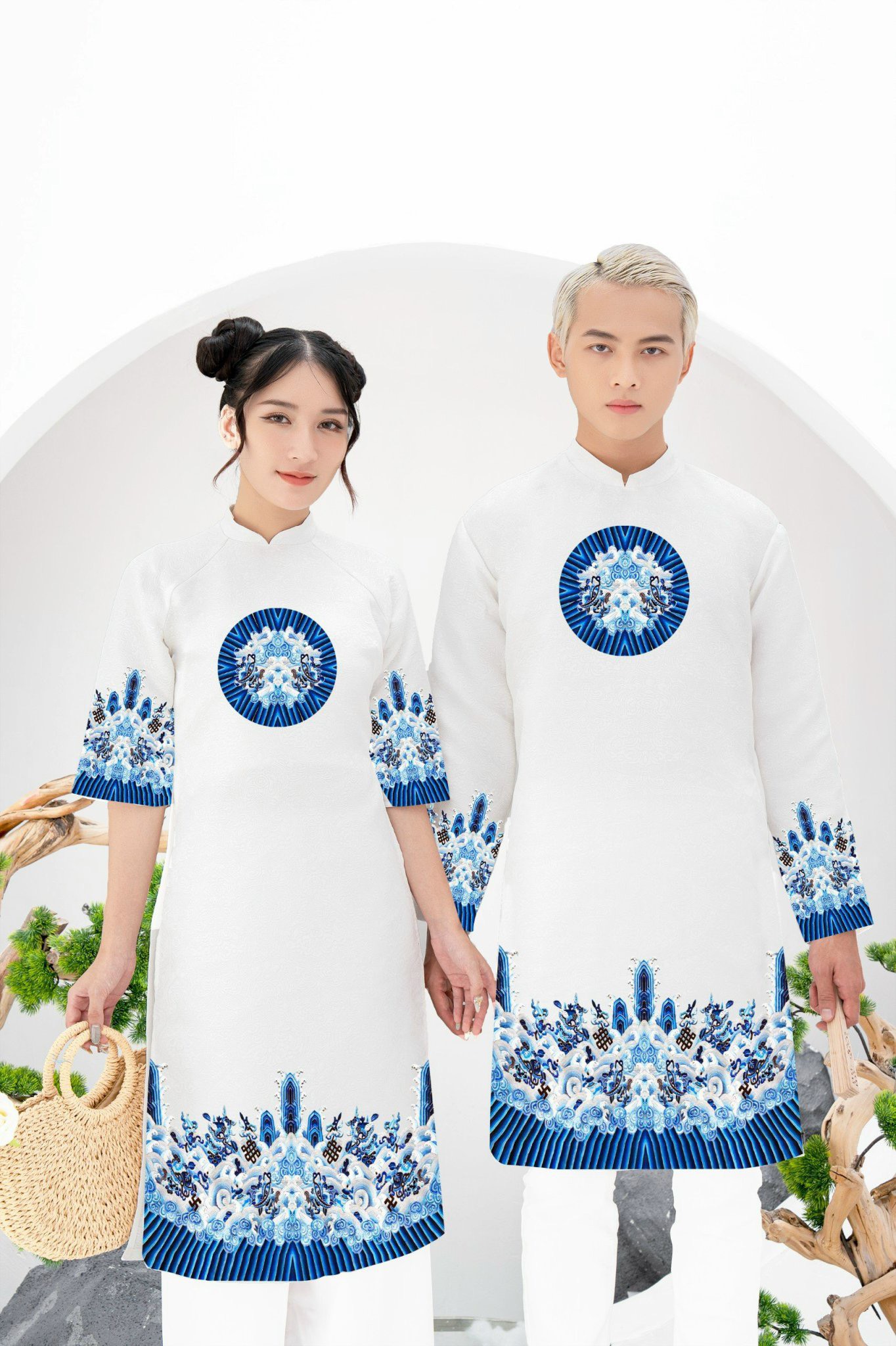 Áo Dài Cặp Đôi Gấm In 3D Trẻ Trung