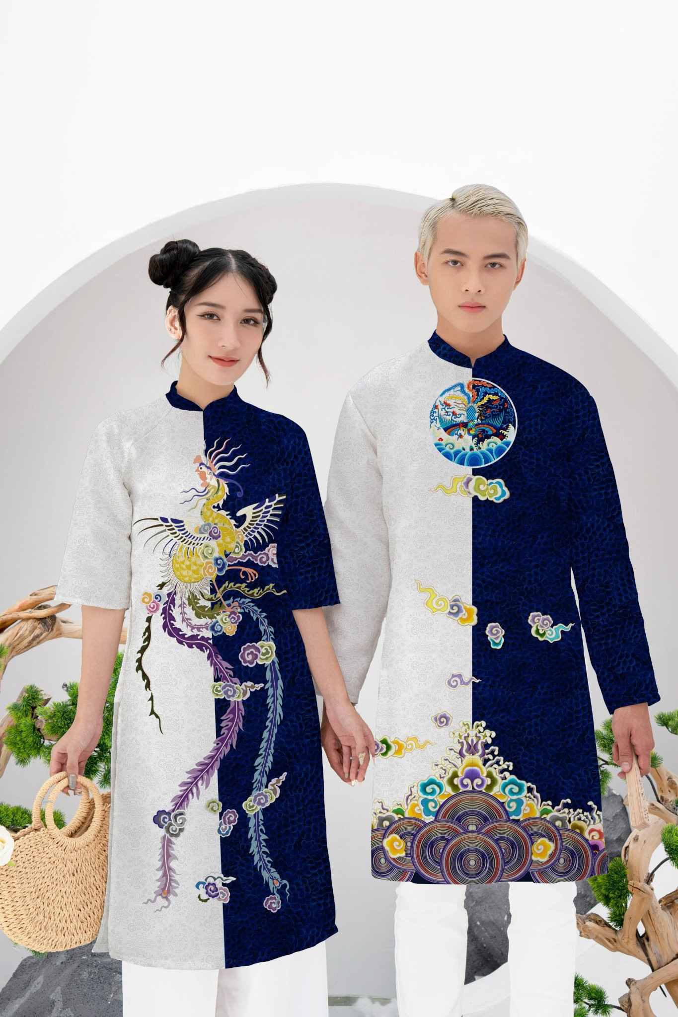 Áo Dài Cặp Đôi Gấm In 3D Trẻ Trung
