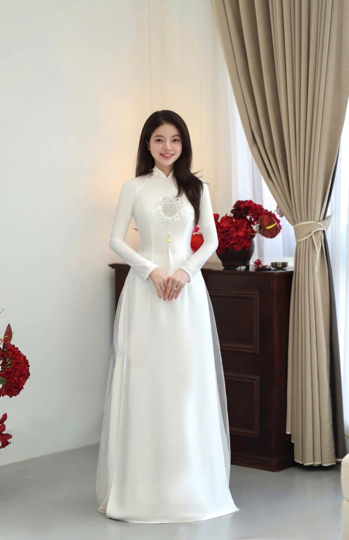 • Áo Dài Cô Dâu Họa Tiết Hỷ Phối Hoa Trẻ Trung