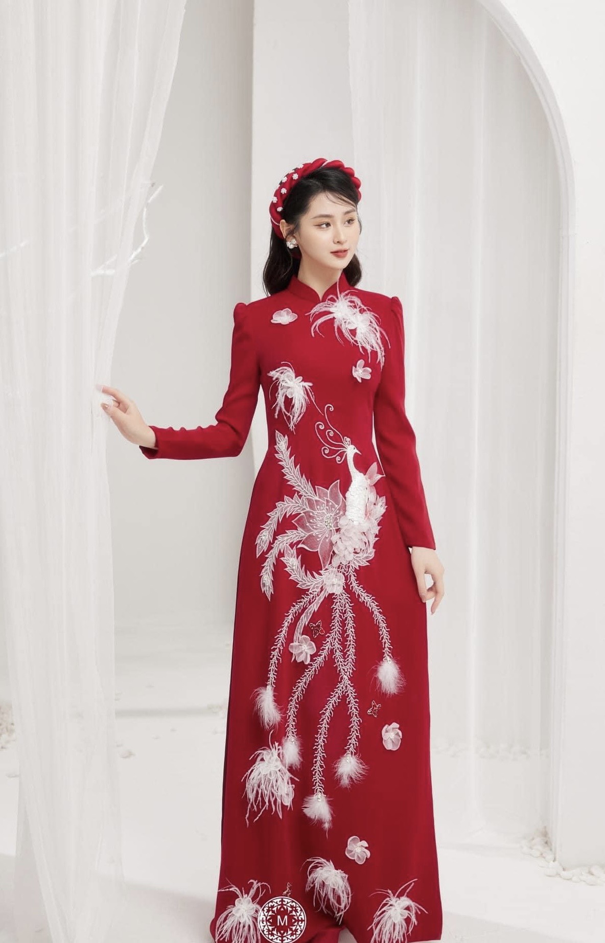 • Áo Dài Cô Dâu Lông Vũ Đỏ