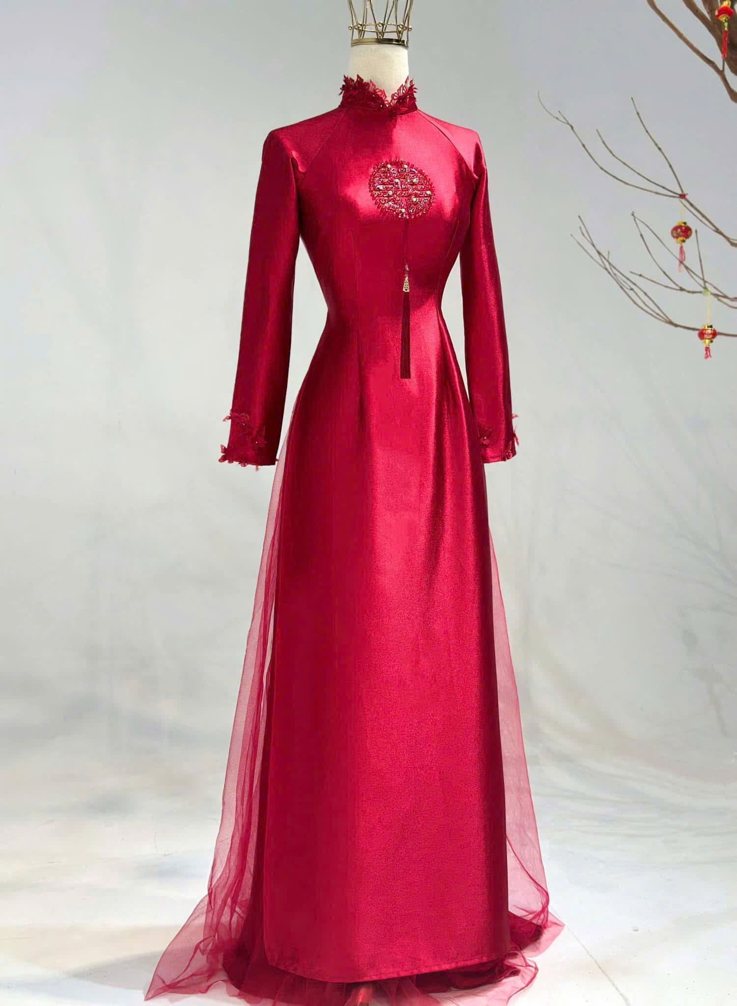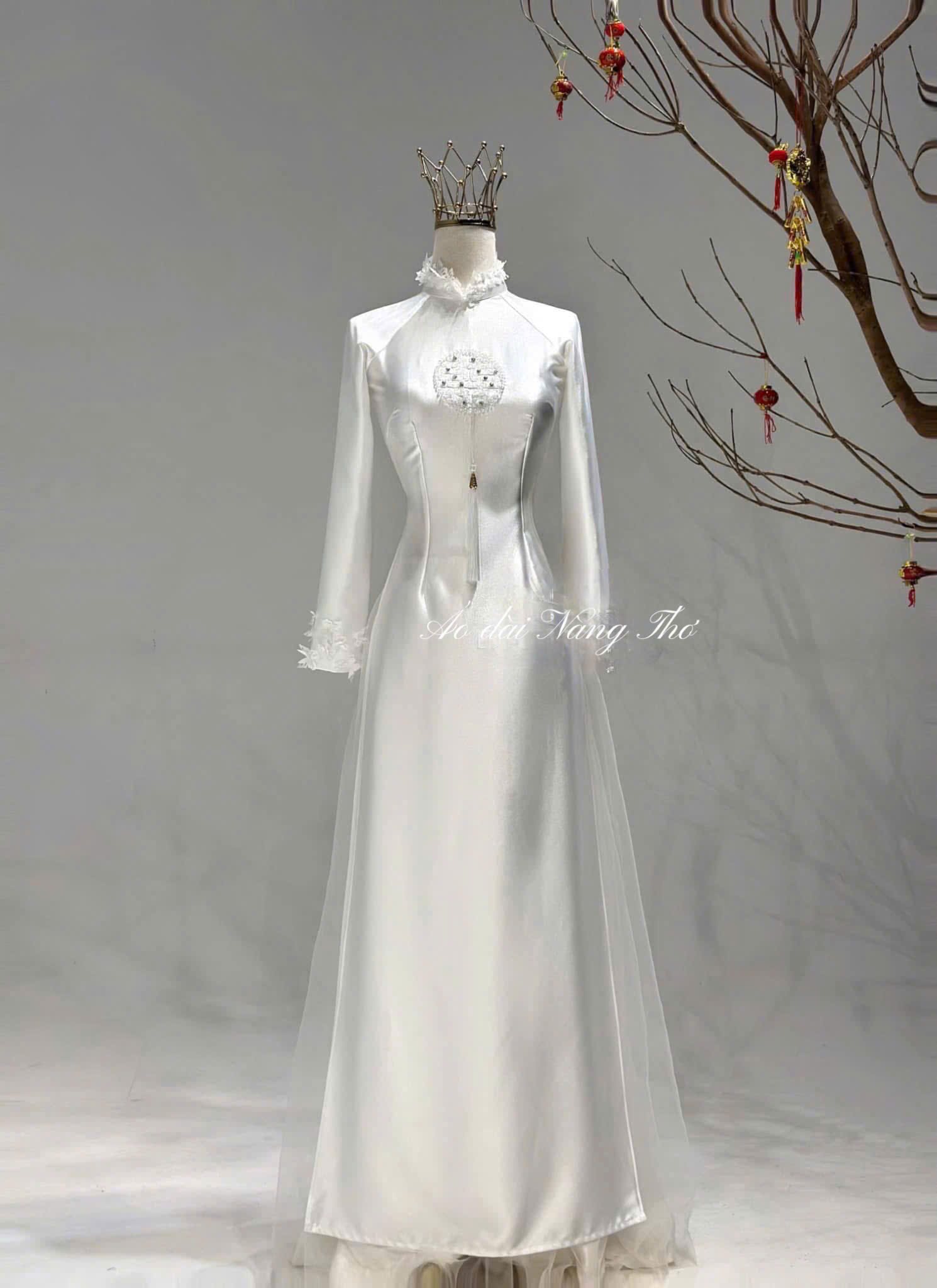 • Áo Dài Cô Dâu Lụa Cao Cấp Đính Hỷ Sang Trọng
