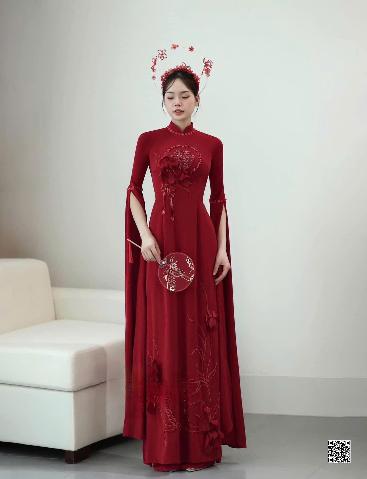 Áo Dài Cô Dâu Lụa Cao Cấp Xẻ Tay Thời Trang