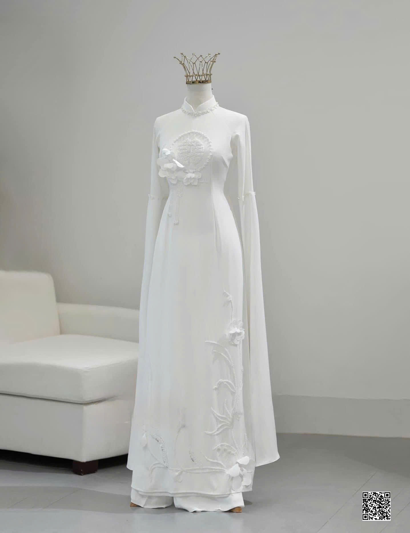• Áo Dài Cô Dâu Lụa Cao Cấp Xẻ Tay Thời Trang